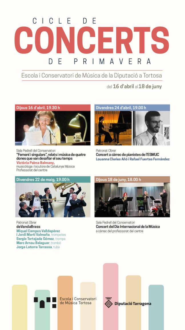 En el marc del Cicle de Concerts de Primavera que organitza l'Escola i Conservatori de Música de la Diputació a Tortosa, Concert del Dia Internacional de la Música a càrrec del professorat del centre