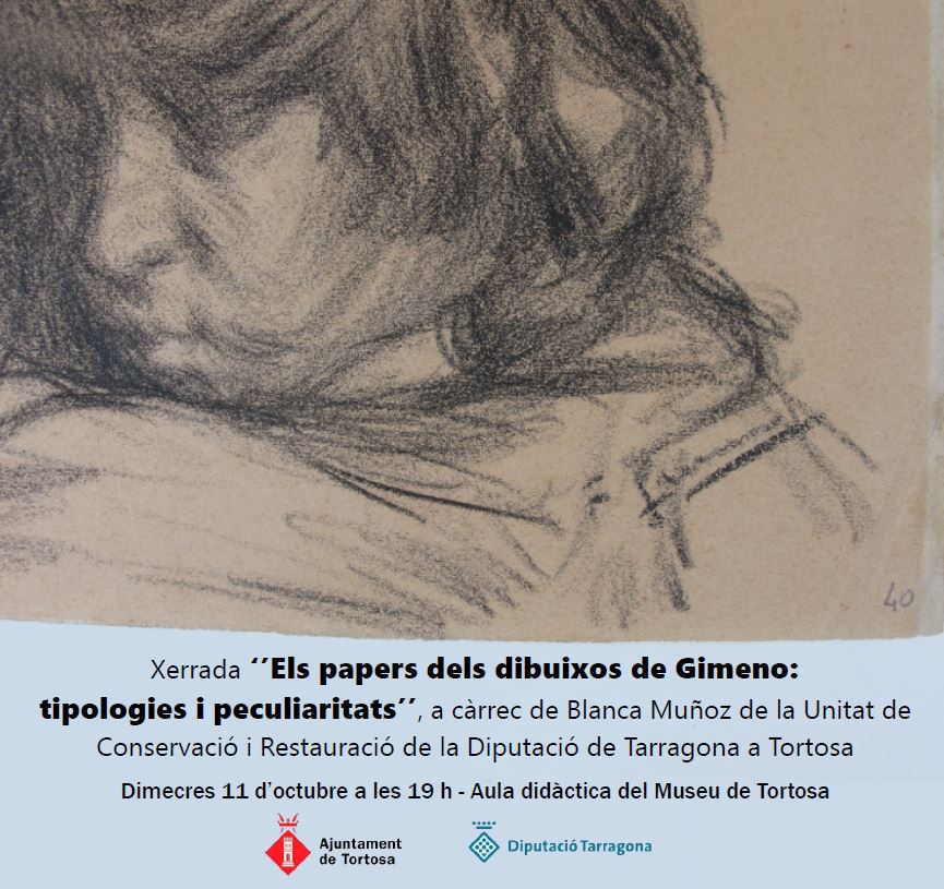 La xerrada "Els paper dels dibuixos de Gimeno: tipologies i peculiaritats" aprofundirà en la col·lecció de dibuixos del pintor Francesc Gimeno, propietat de l'Ajuntament de Tortosa, que va ser intervinguda l'any 2020 per la Unitat de Conservació i Restauració de Béns Culturals. Es tractarà sobre les característiques de les obres, els tipus de papers emprats per l'artista o les tècniques de dibuix i els dibuixos a doble cara que es trobaven tapats; aspectes que són desconeguts pel gran públic i que es van descobrir en els estudis i examens tècnics preliminars a la intervenció.