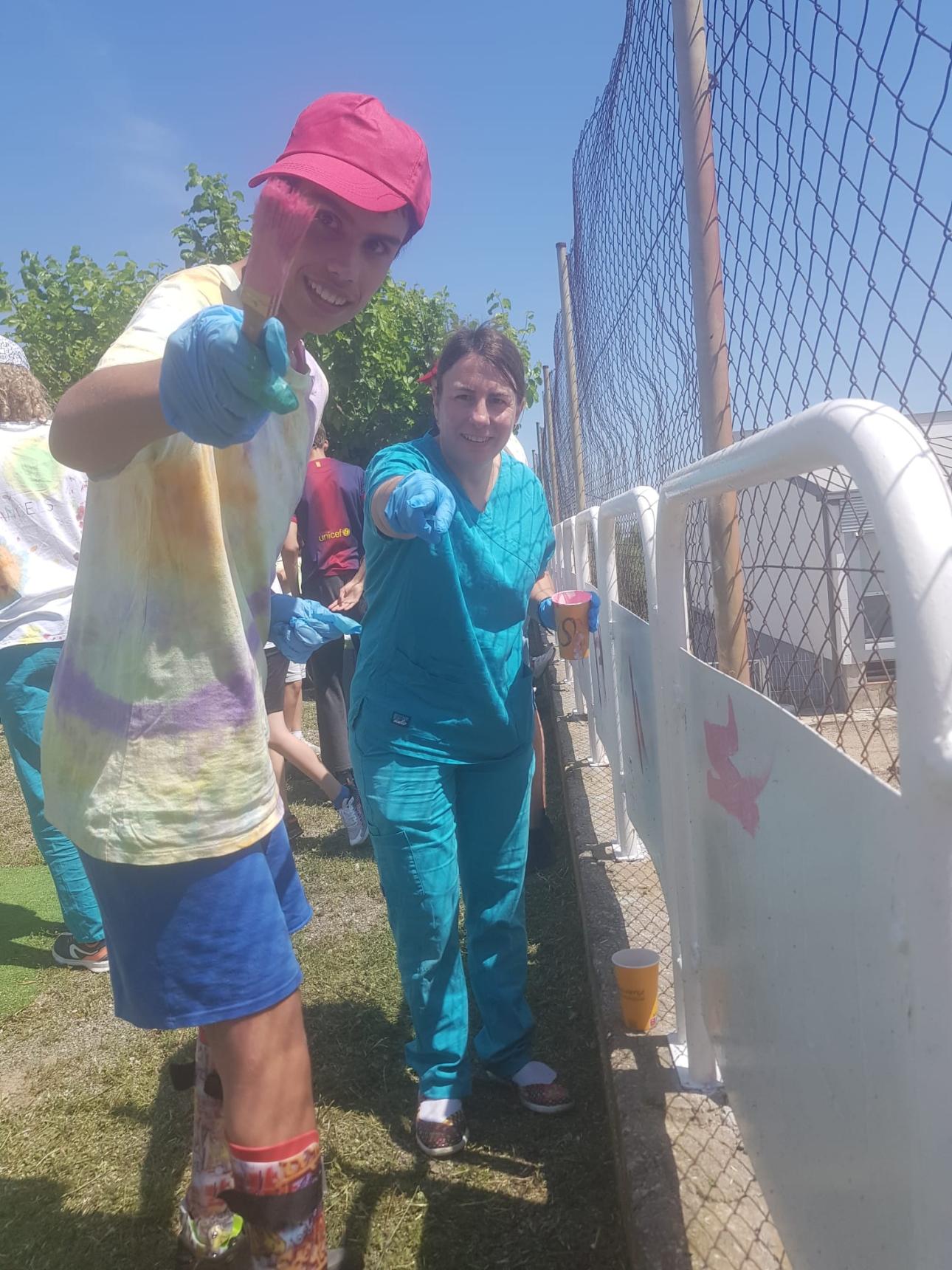 A les 15 hores ens vam trobar al pati per fer un grafiti i donar color a aquest espai.
