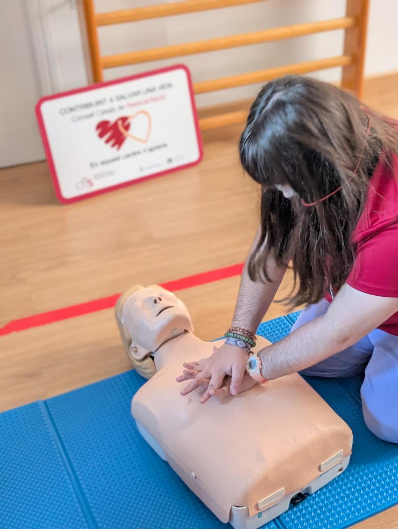 Durant aquesta setmana, professionals i alumnat del centre han repassat amb èxit les maniobres de ressuscitació cardiopulmonar (RCP), el maneig del desfibril·lador extern automàtic (DEA) i les tècniques de desobstrucció de la via aèria.