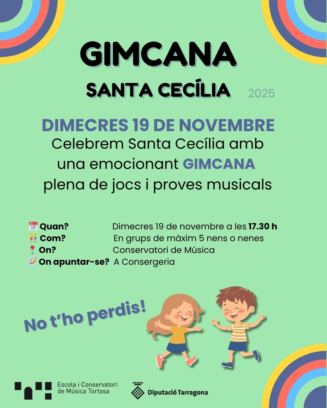 Fil d'ariadna Inici Agenda Gimcana Santa Cecília Gimcana Santa Cecília Quan: 19 novembre 2025 Hora: 17:30 h - 18:30 h On: Conservatori de Tortosa