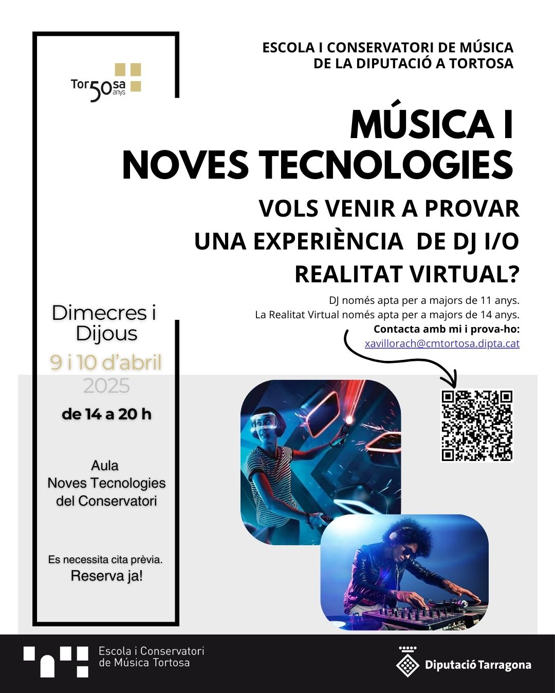 Fil d'ariadna Inici Agenda Música i Noves Tecnologies Música i Noves Tecnologies Quan: 9/04/2025 - 10/04/2025 Hora: 14:00 h - 20:00 h On: Aula Noves Tecnologies del Conservatori