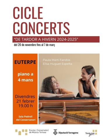 Fil d'ariadna Inici Agenda Agenda Agenda 61 - 80 102 Cerca títol, cos ...etc AGENDA Mater class de Tuba On: Aula Despuig del Conservatori Quan: 10 abril 2025 Hora: 15:00 h - 21:00 h AGENDA Jornades Vent Fusta - Clarinet On: Aula 3 i Polivalent Quan: 9/04/2025 - 10/04/2025 Hora: 15:00 h - 21:00 h AGENDA Música i Noves Tecnologies On: Aula Noves Tecnologies del Conservatori Quan: 9/04/2025 - 10/04/2025 Hora: 14:00 h - 20:00 h AGENDA Bandes Sonores On: Sala d'actes Institut Dertosa Quan: 9 abril 2025 Hora: 17:30 h - 18:30 h AGENDA Master class de Trombó On: Aula Despuig del Conservatori Quan: 8 abril 2025 Hora: 15:00 h - 21:00 h AGENDA Jornades de Vent Fusta - Saxòfon On: Aula 11 del conservatori Quan: 7/04/2025 - 8/04/2025 Hora: 10:30 h - 21:00 h AGENDA Jornades Vent Fusta - Oboè On: Aula 13 Quan: 7/04/2025 - 8/04/2025 Hora: 15:00 h - 20:00 h AGENDA Cantem Harmònics On: Sala Pedrell del Conservatori Quan: 7/04/2025 - 8/04/2025 Hora: 17:30 h - 19:45 h AGENDA Master class Percussió On: Aula 4 del Patronat Quan: 8 abril 2025 Hora: 11:00 h - 19:00 h AGENDA Master class Trompa On: Aula 4 del Patronat Quan: 7 abril 2025 Hora: 16:00 h - 20:00 h AGENDA Muntatge Òpera On: Aula didàctica del Museu de Tortosa Quan: 7 abril 2025 Hora: 16:00 h - 20:00 h AGENDA Concert de les Orquestres de Grau Professional On: Sala d'actes Institut Dertosa Quan: 1 abril 2025 Hora: 19:45 h - 21:00 h AGENDA Conferència sobre estudis de música de GP a Tortosa On: Palau Villores de Sant Mateu Quan: 25 març 2025 Hora: 19:45 h - 21:00 h AGENDA Master class de Cant On: Sala Pedrell del Conservatori Quan: 24 març 2025 Hora: 15:30 h - 21:00 h AGENDA Xerrada Els Estudis superiors de Músia On: Conservatori de Música, Sala Pedrell Quan: 17 març 2025 Hora: 18:00 h - 19:30 h AGENDA Activitat La Pedagogia i els Estudis superiors de Música On: Conservatori de Música, Sala Pedrell Quan: 17 març 2025 Hora: 16:00 h - 17:30 h AGENDA Concert de compositores On: Conservatori, Sala Pedrell Quan: 12 març 2025 Hora: 19:00 h - 20:00 h AGENDA Layla, un viatge d'esperança On: Sala Pedrell del Conservatori Quan: 7 març 2025 Hora: 18:00 h - 20:00 h AGENDA Audició Carnaval On: Sala Pedrell del Conservatori Quan: 27 febrer 2025 Hora: 18:00 h - 19:30 h AGENDA Piano a 4 mans On: Sala Pedrell del Conservatori Quan: 21 febrer 2025 Hora: 19:00 h - 20:30 h Paginació Primera pàgina « Primera Pàgina anterior ‹ Anterior … Page 3 Pàgina actual 4 Page 5 … Pàgina següent Següent › Última pàgina Darrera ››