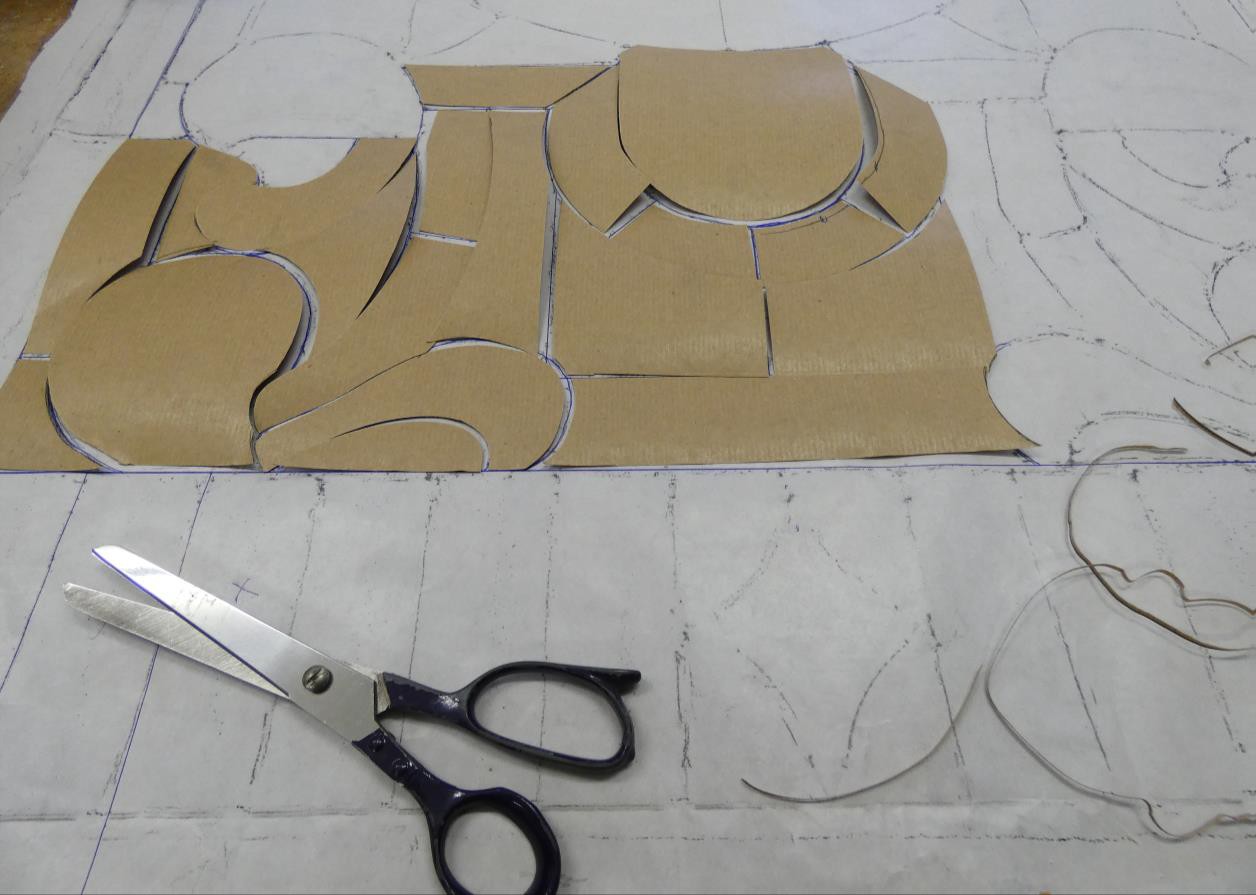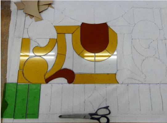 Realització i tall de les plantilles dels vidres, amb paper de patrons