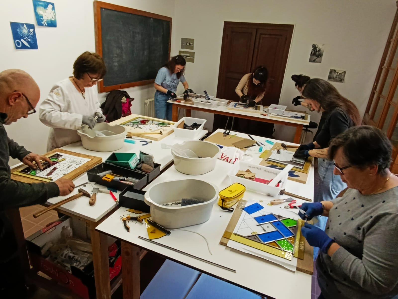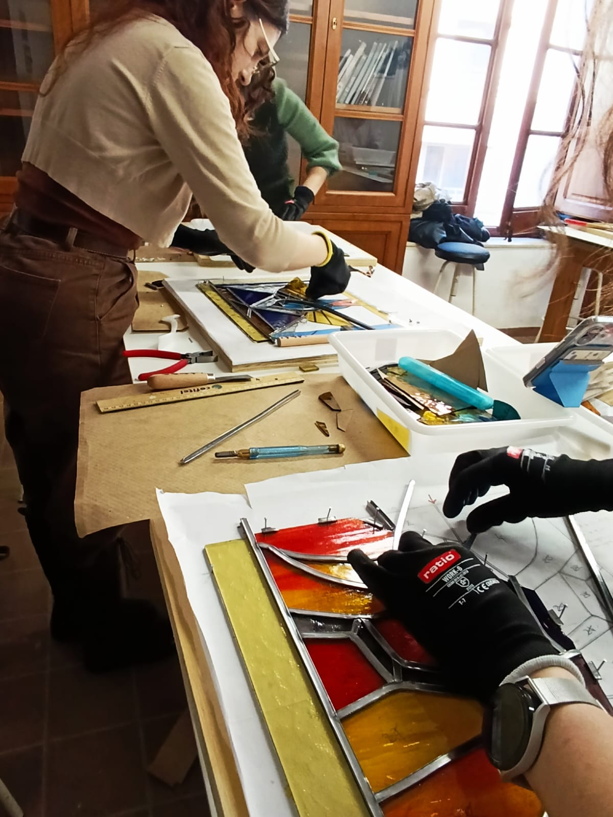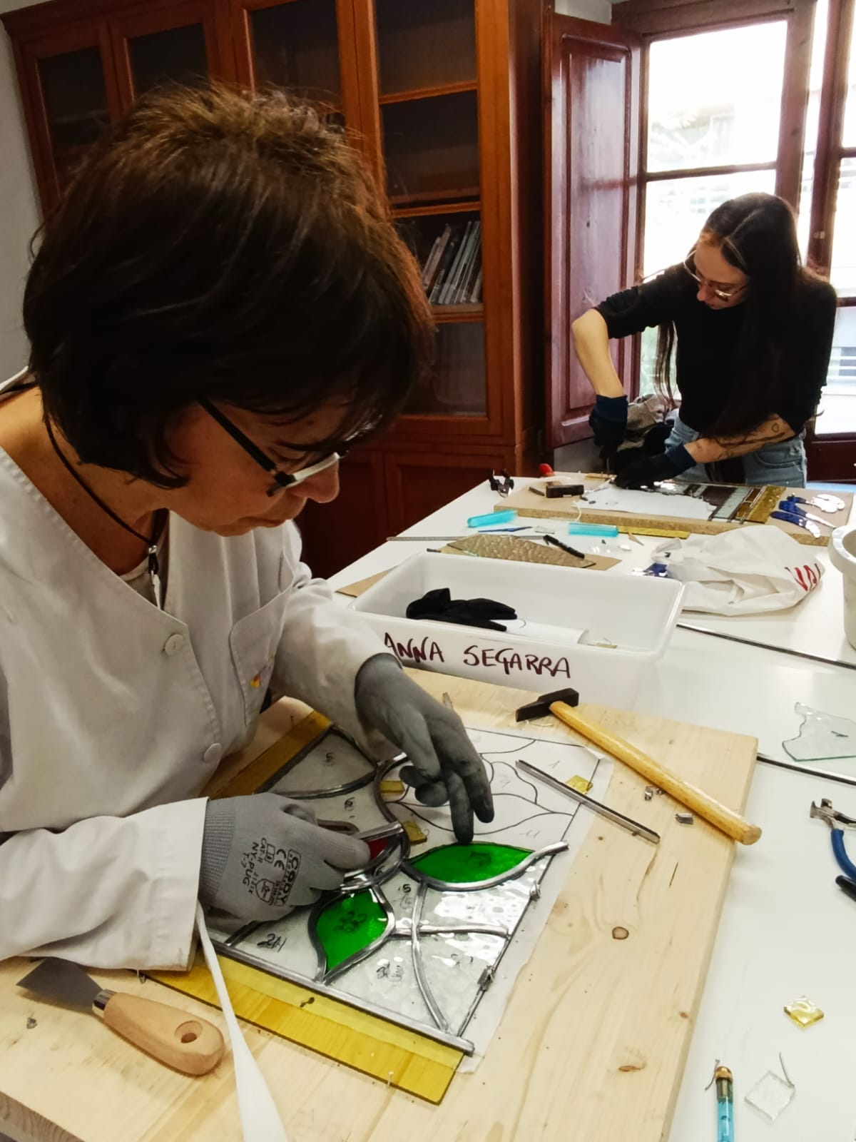 -El primer dia de curs cada participant ha d'abonar 60€ per cobrir les despeses per a material i eines personals específiques (tallavidre, brunyidor, soldador, vidre catedral, tisores de patrons, plom, estany, escombretes, etc.)