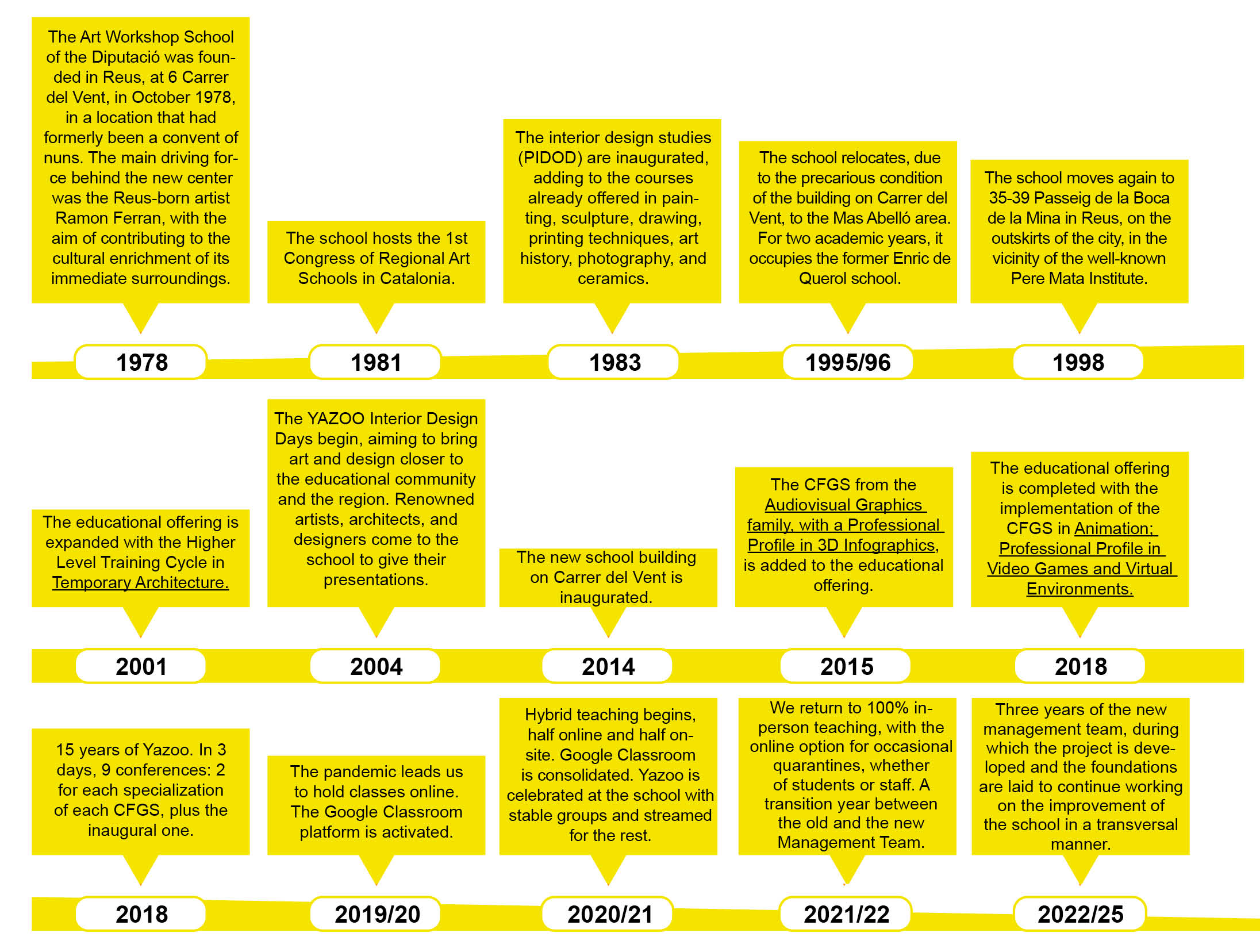 1978 The Escola Taller d’Art de la Diputació was founded in Reus on Carrer del Vent, 6, in October 1978, in a site that had once been an old convent of nuns. The main driving force behind the new centre was the Reus-born artist Ramon Ferran, who sought to contribute to the cultural enrichment of his immediate surroundings.