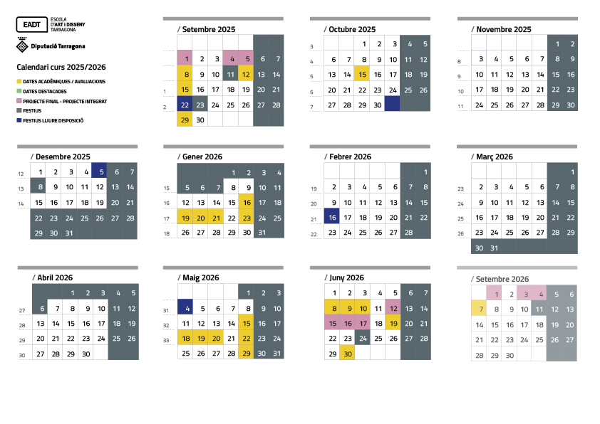 DEL DILLUNS 30 DE MARÇ AL DILLUNS 6 D’ABRIL