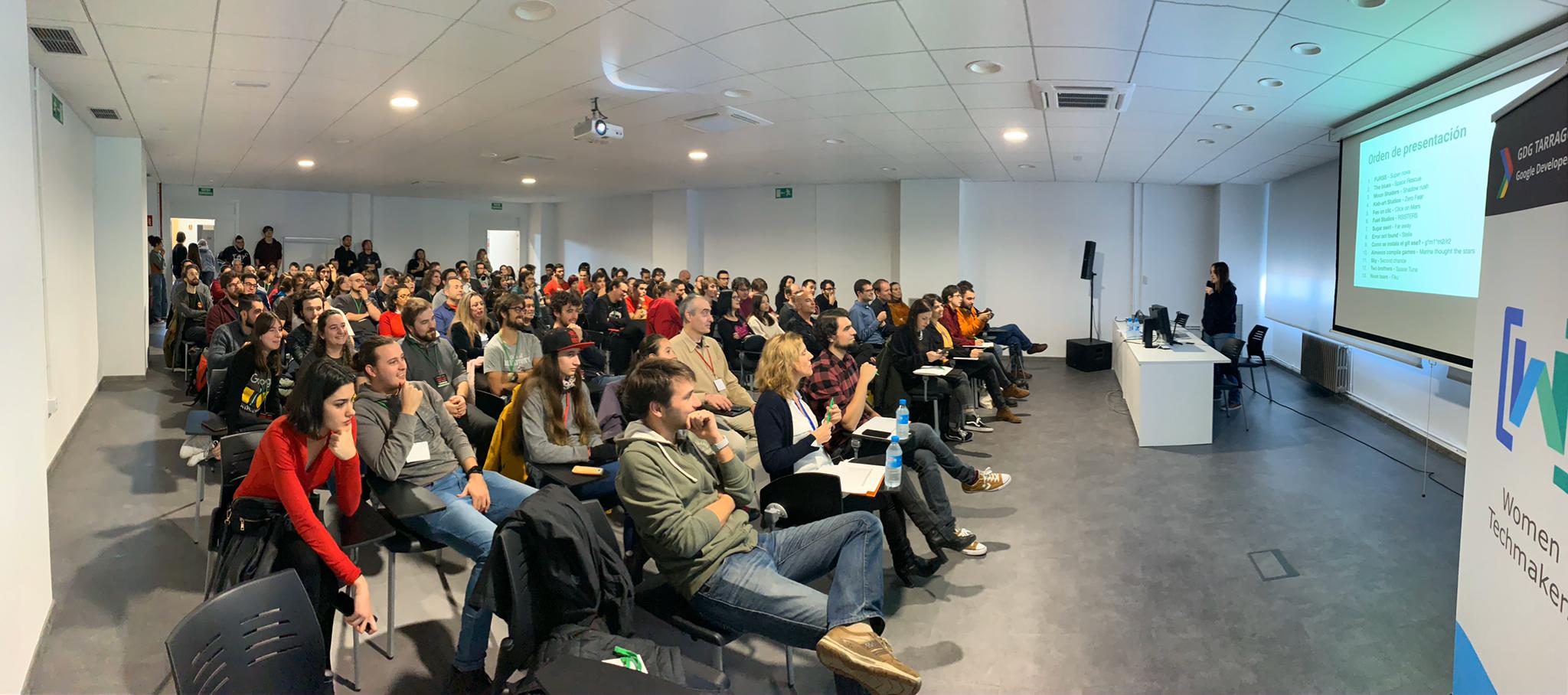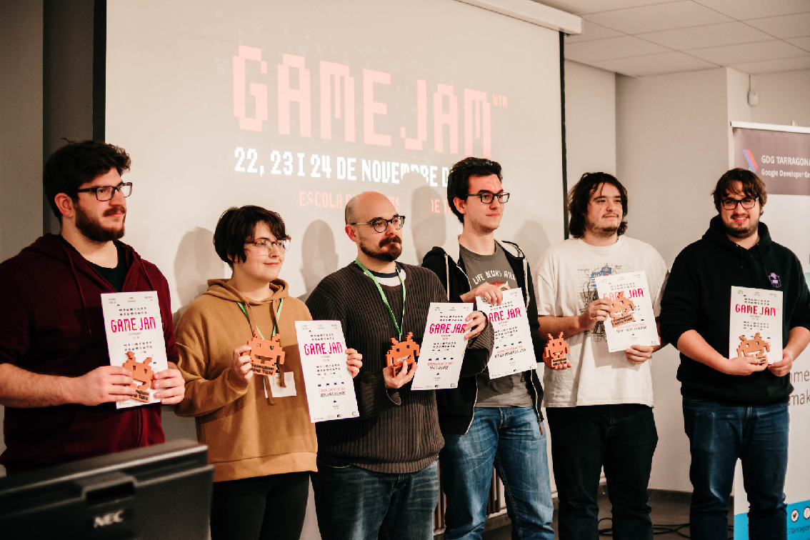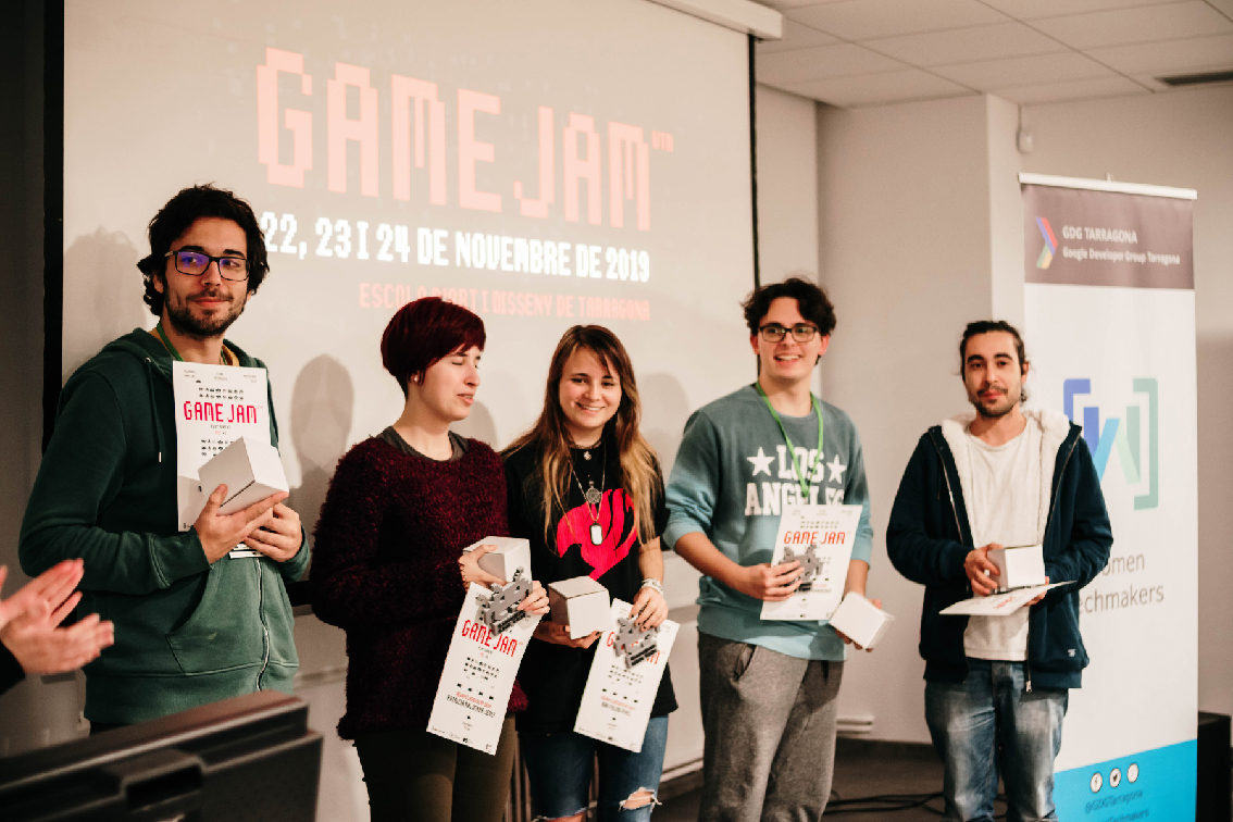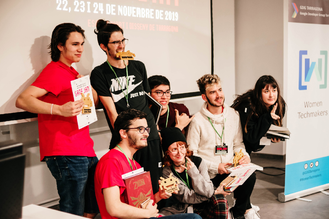 Èxit de participants i d'assitents a la Game Jam WomenTechmakers, una iniciativa de l'GDG Tarragona amb col·laboració amb l'Escola d'Art i Disseny de Tarragona per donar visibilitat a les dones que es dediquen a la creació i desenvolupament de videojocs i promoure aquestes carreres professionals entre les més joves. La Game Jam és un concurs de creació de videojocs a realitzar en un cap de setmana. Els participants, organitzats per equips, solen estar especialitzats en una o diverses disciplines: programació, disseny, il·lustració, animació, música ... Té dos objectius, el primer és ajuntar en un espai comú a professionals de el sector amb estudiants d'informàtica, de disseny de videojocs, d'animació, d'il·lustració i creatius locals, perquè en un temps reduït puguin demostrar el seu talent creant un videojoc sobre un tema concret. El segon, donar visibilitat a les dones que es dediquen a la creació i desenvolupament de videojocs i promoure aquestes carreres professionals entre les més joves. L'equip guanyador d'aquesta segona edició de la Game Jam WTM, que s'ha celebrat els dies 22, 23 i 24 de novembre a a l'EADTarragona, ha estat 'FURSS'; amb Marc Batalla Mestres, Àlex Lluna Garvín, Sergi Muñoz Álvarez, Jordi Millán Yamada, Laura Pérez Caballé, Roger Salvany García i Marta Martínez Plaza. L'equip va acabar de dissenyar i implementar el seu projecte Supernova, un videojoc en estil arcade, amb una sola pantalla i un només antagonista, que ha de jugar-se amb dues persones. 'Sugar Swirl' va acabar en segon lloc i Fuet Studio, el tercer. Enhorabona per la gran feina que heu fet tots i totes les participants! Fotografies: José Aulet.
