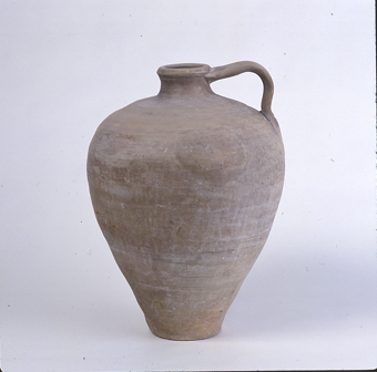 Gerra d'agua o càntir desconegut Argila ferruginosa. Sense envernissar. Marques de torn 11 cm (diam base) 7,5 (diam boca) 29,5 (diam màx) 40 cm (alt) Obra no exposada segle XX MAMT NIG 3806
