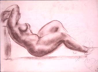 Dibuix al pastel marró sobre paper blanc