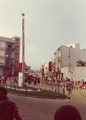 Les imatges que recupera l’Arxiu de la Diputació de Tarragona, obra del fotògraf tarragoní Chinchilla, immortalitzen aquesta commemoració que es desenvolupà a la Plaça Arnau de Palomar, just en un lateral de l’Església de Sant Jaume, on es va ubicar l’esmentat monument. Els encarregats de presidir-lo foren l’aleshores alcalde de Riudoms, Lluís Torrell, i el president de la Diputació de Tarragona en aquella època, Josep Clua, així com d’altres autoritats de la comarca.