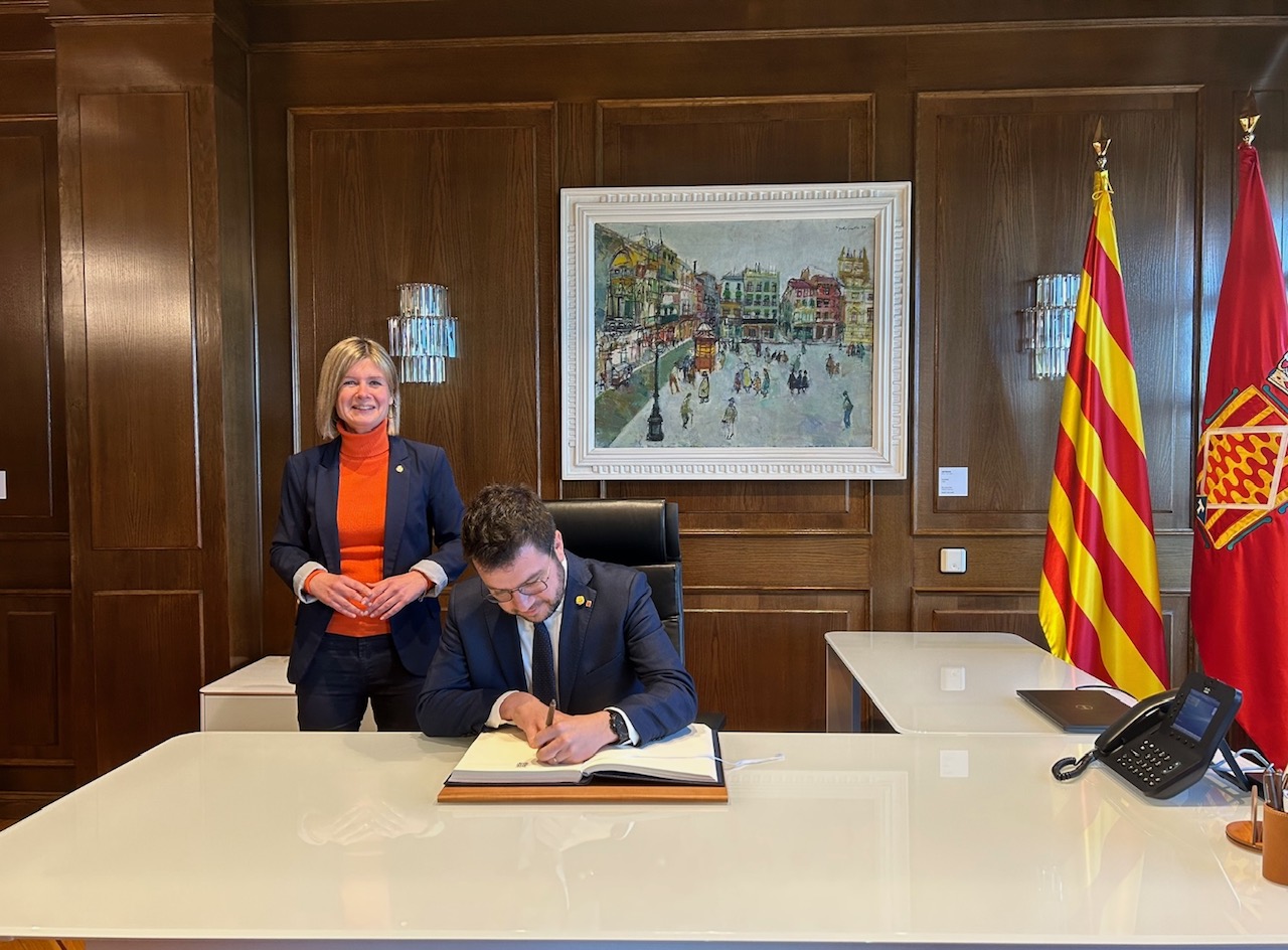 El president de la Generalitat, Pere Aragonès, signa el Llibre d'Honor de la Diputació
