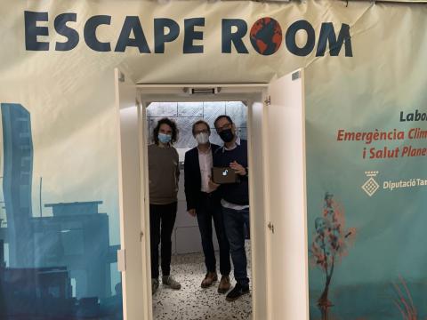 El diputat delegat de Medi Ambient, Salut Pública i Territori de la Diputació de Tarragona, Josep Forasté, ha destacat que “l’emergència climàtica representa un repte global i cal que tots, amb els nostres costums, rutines i hàbits diaris siguem més eficients i reduïm l’impacte de la nostra activitat sobre el medi ambient”. El diputat ha visitat el nou escape room instal·lat al Casal Municipal de la Nou de Gaià aquest dissabte, acompanyat de la regidora del municipi, Blanca Guillén. Més d’un centenar de veïns i veïnes del municipi han pogut gaudir de l’activitat durant tot el cap de setmana.