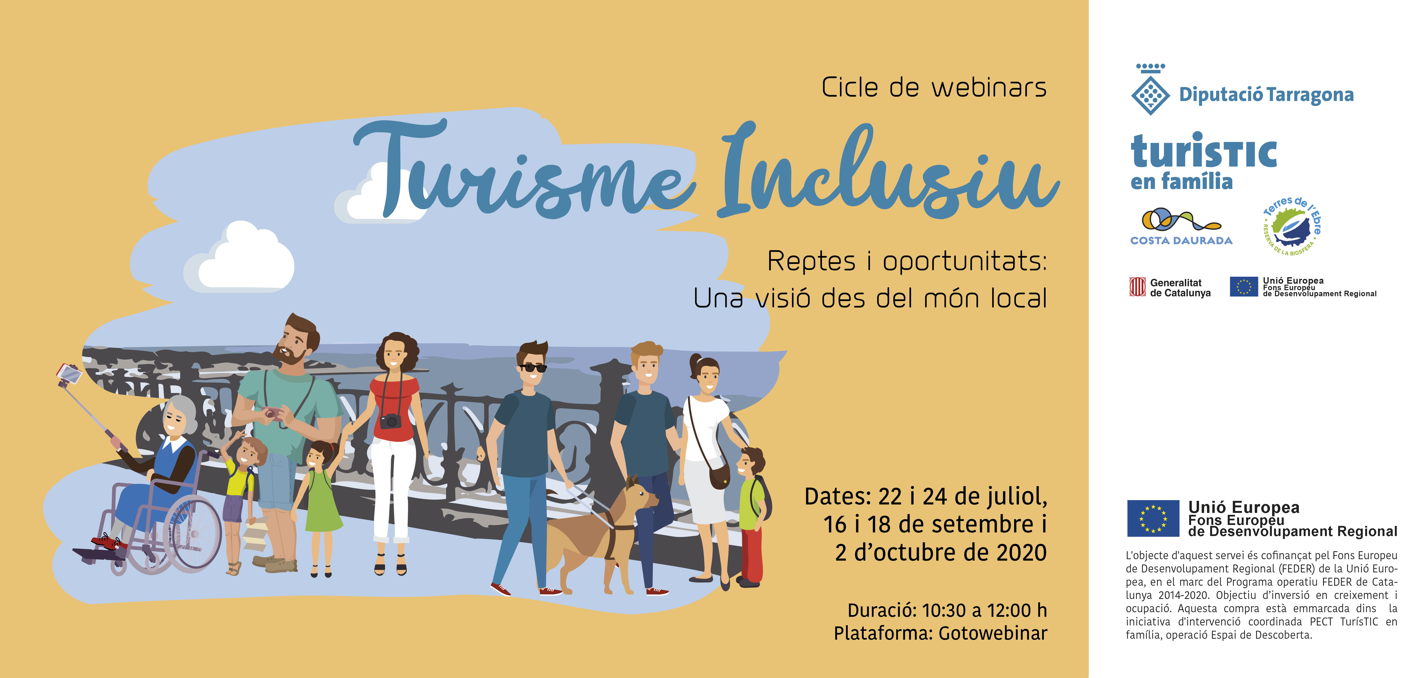 L’Operació Espai de Descoberta del projecte PECT TurisTIC en Família, liderada per la Diputació de Tarragona, organitza un cicle de trobades virtuals sobre Turisme inclusiu. Les dues primeres sessions, adreçades principalment a administracions locals del territori tenen lloc aquest dimecres, dia 22, i divendres, dia 24 de juliol. El cicle es complementarà al mes de setembre (els dies 16 i 18) amb dues sessions centrades en empreses privades del sector turístic i a l’octubre (el dia 2), amb una sessió participativa per presentar les conclusions del cicle.
