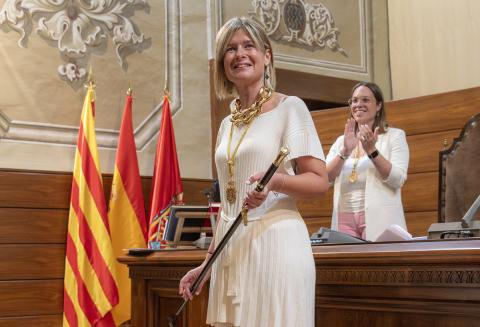 En el seu parlament d’investidura, la presidenta s’ha compromès a continuar treballant per tots els municipis, les entitats i la ciutadania del territori, cercant el diàleg, l’acord i el consens amb totes les forces polítiques amb valors democràtics representades a la Diputació. Noemí Llauradó ha reivindicat el paper de la Diputació en el foment del desenvolupament econòmic i social i en la planificació del territori, “perquè massa sovint la Diputació només es té en compte com a font de finançament i s’obvia el seu evident i necessari rol de motor del territori”. “La Diputació té el deure de trobar l’equilibri entre la satisfacció de les necessitats dels municipis més petits i la de les inquietuds i aspiracions dels més grans. Serem al seu costat perquè prosperin de manera sostenible econòmica, social i en el medi ambient”, ha assegurat Noemí Llauradó, qui també ha posat de relleu el bagatge adquirit durant el passat mandat i ha assegurat que “m’han permès conèixer i teixir xarxa al territori i tenir molt clar quin és el rumb que ha d’agafar la institució a partir d’ara”.
