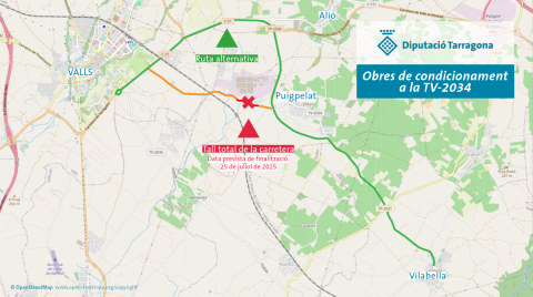 Per les obres de reforç de ferm que s’estan duent a terme a la carretera T-740, entre Falset i Porrera, la via romandrà tallada en la seva totalitat en ambdós sentits des del dilluns 15 dins al divendres 19 de juliol.