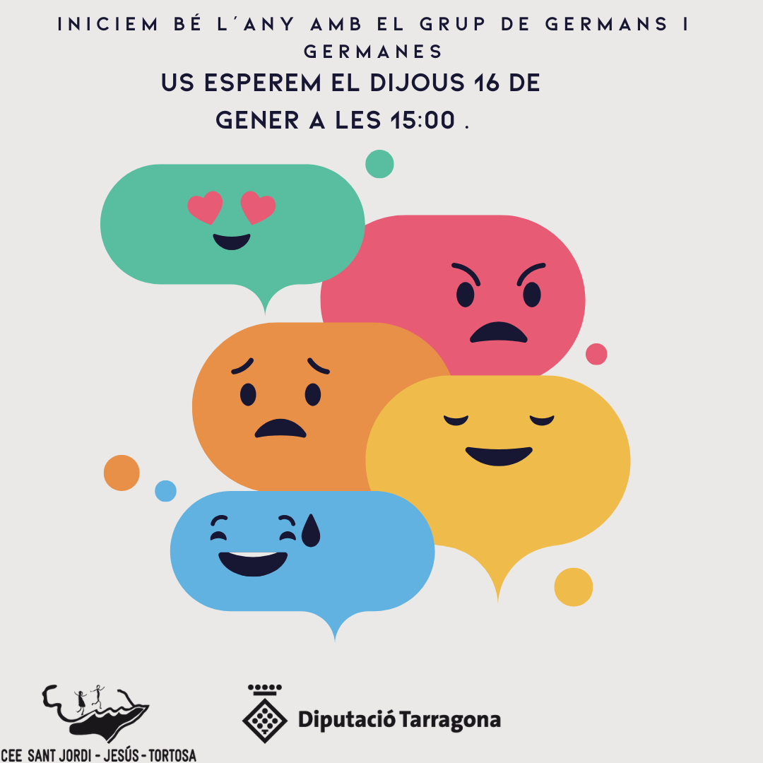 Fil d'ariadna Inici Agenda Grup de germans i germanes Grup de germans i germanes El proper 16 de gener de 15h a 16h , al CEE Sant Jordi Quan: 16 gener 2025 Hora: 15:00 h - 16:00 h