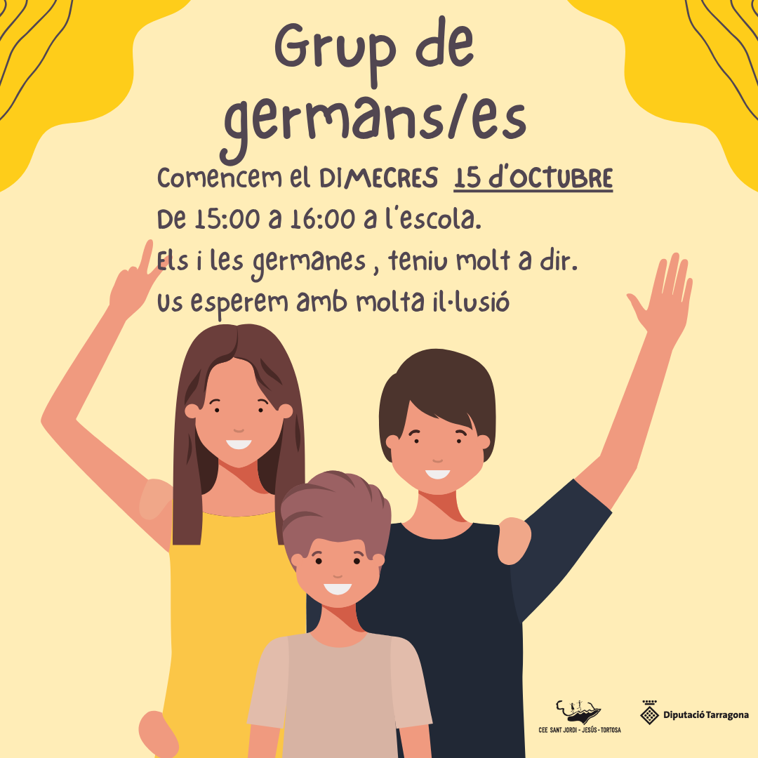 Fil d'ariadna Inici Agenda Grup de germans i germanes Grup de germans i germanes Quan: 15 octubre 2025 Hora: 15:00 h - 16:00 h