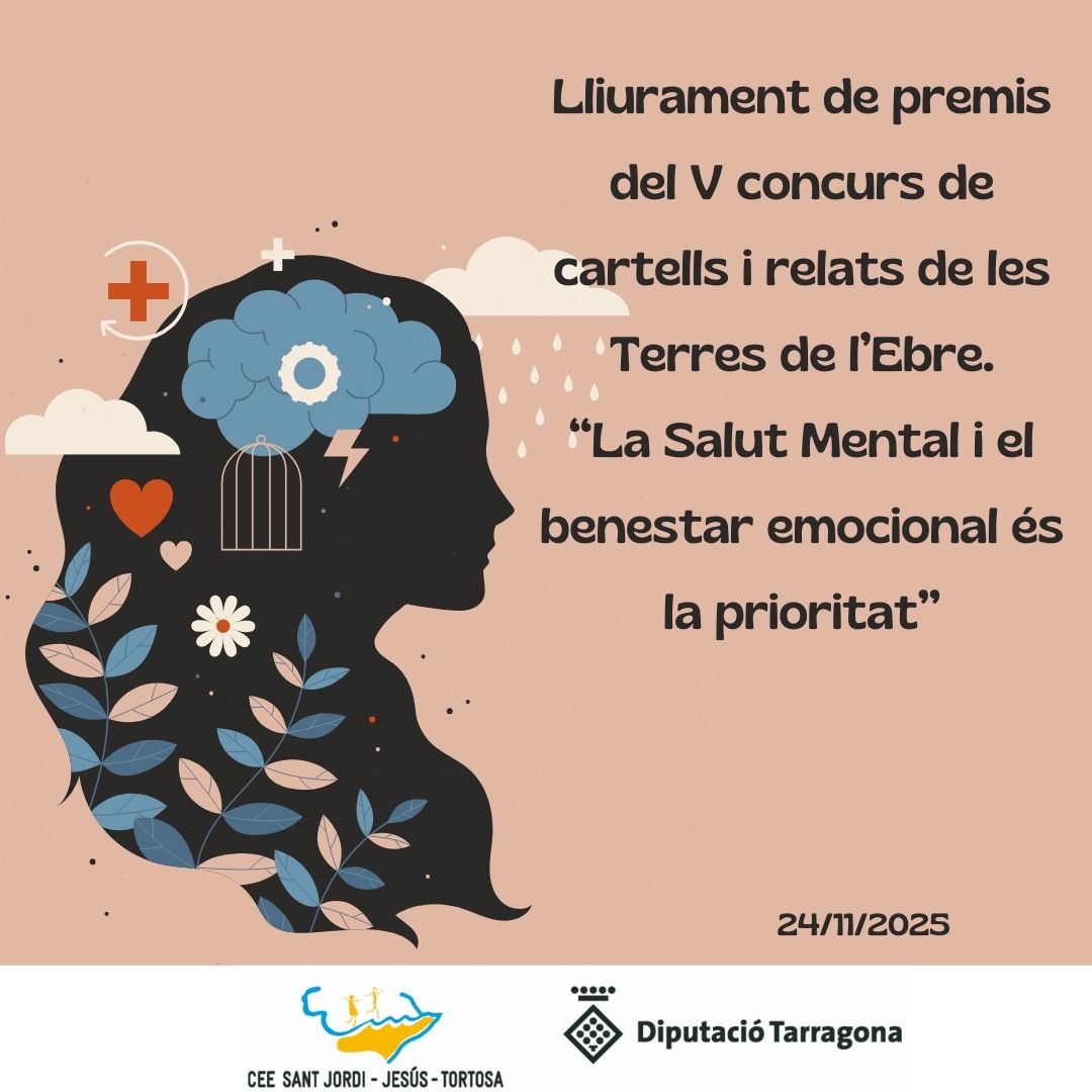 Fil d'ariadna Inici Agenda LLiurament de premis del V concurs de cartells i relats de les Terres de l'Ebre LLiurament de premis del V concurs de cartells i relats de les Terres de l'Ebre La Salut Mental i el benestar emocional és la prioritat Quan: 24 novembre 2025 Hora: 10:00 h - 11:00 h