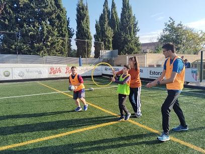 Com cada dijous, l'alumnat de l’Aula Pèrgola va compartir l'entrenament de rugbi amb els estudiants més grans del centre.