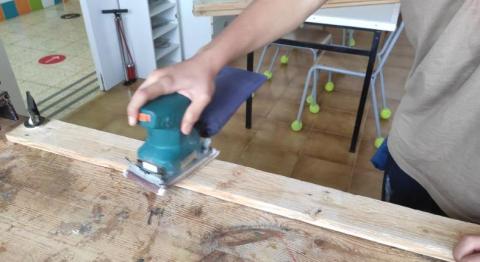 L’alumnat del PFI de Muntatges hem transformat un palet de fusta per a fer una melière i poder practicar “melèes”, una de les jugades de rugbi.