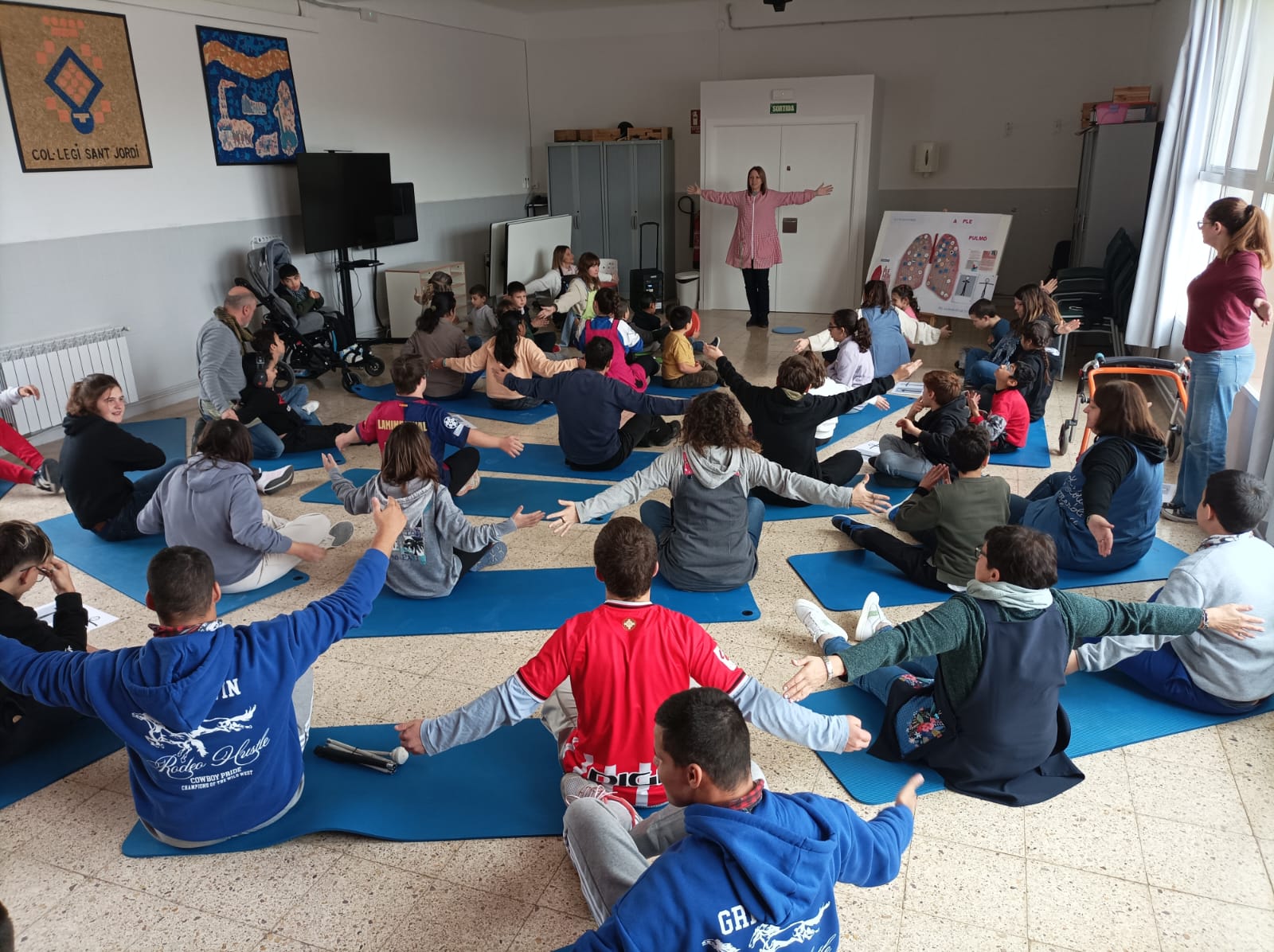 Vam començar amb la respiració iòguica per a ser conscients d'una acció que realitzem moltes vegades al dia sense adornar-nos.