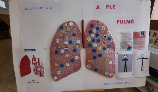 En finalitzar, vam exposar el mural de La Marató a l'entrada del centre.