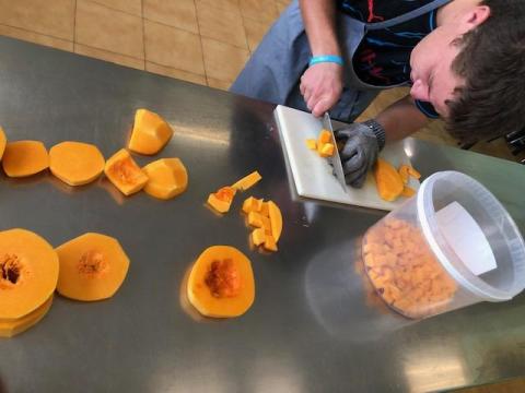 Dins del projecte “Menús Mensuals” el PFI Auxiliar de Cuina avui ha elaborat un menú de tardor que hem pogut degustar tots junts a l’aula de cuina. Hem dinat crema de carabassa amb parmesà, pollastre arrebossat amb xampinyons i de postre coc amb gelat casolà de vaïnilla. Tots els plats han estat cuinats per nosaltres al nostre taller.