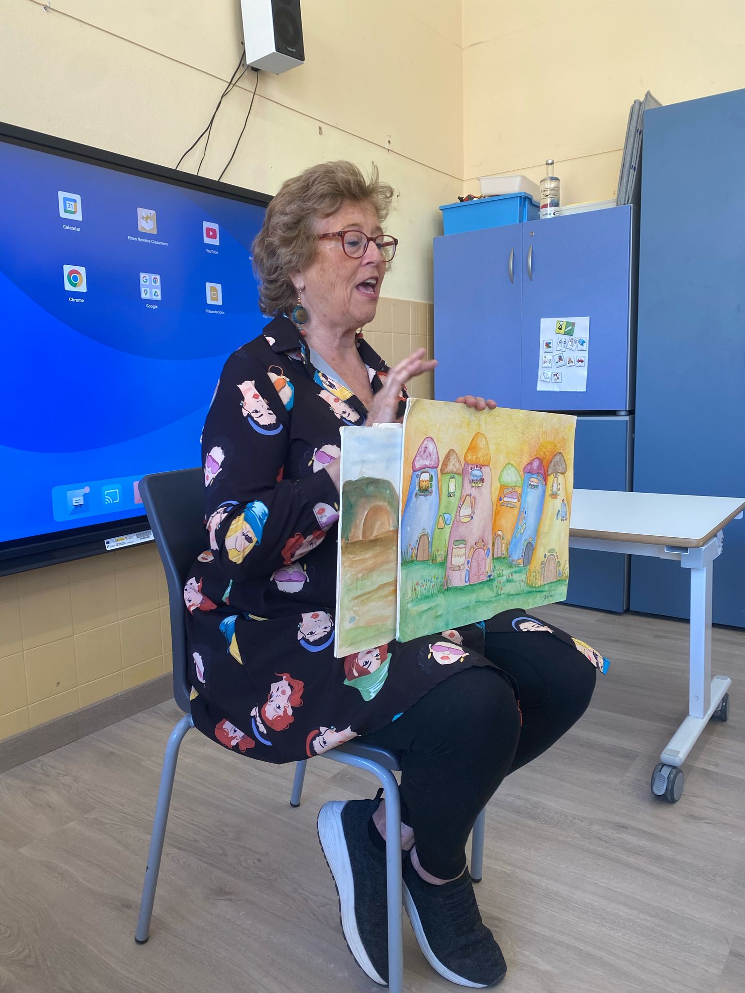 Ens han vingut a visitar les iaies del projecte Vincles de la Biblioteca Pública Marcel·lí Domingo. El projecte Vincles és una iniciativa intergeneracional i intercultural portada a terme per iaios i iaies que volen promoure el gust per llegir a l’alumnat. Per una banda, als més petits els han explicat dos contes escrits per una de les iaies en un dels seus viatges. I, per una altra banda, als més grans els han explicat el conte Tinc un volcà i hem parlat de com controlar les nostres emocions quan no estem bé.