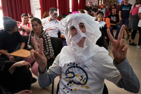 Fil d'ariadna Inici Notícies Castanyada Castanyada Celebrem la castanyada de Tots Sants amb el gegantó Sant Rafael. Els alumnes han preparat panellets i castanyes. Hem vist “La família Adams”, una pel·lícula de por. Hem fet un concurs de disfresses que ha acabat amb una ballada. Fitxers relacionats