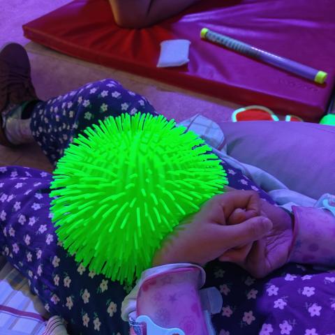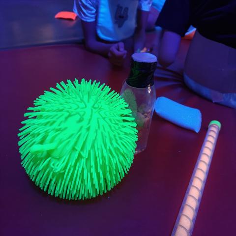 Amb la màgia de la llum negra, els nois i noies de l'aula Tramuntana descobreixen colors, textures i materials que brillen i desperten la curiositat.