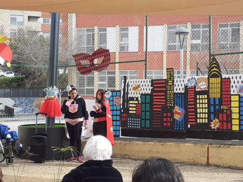 Aquest matí rebem la visita del Rei Carnestoltes de Tarragona amb la seva comitiva. Totes les aules amb les seves disfresses i coloraines. Aquest any moltes fruites i superheroïnes/superherois. Fitxers relacionats