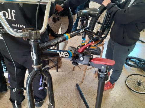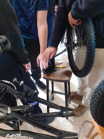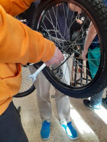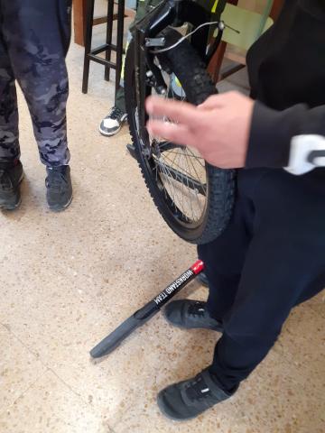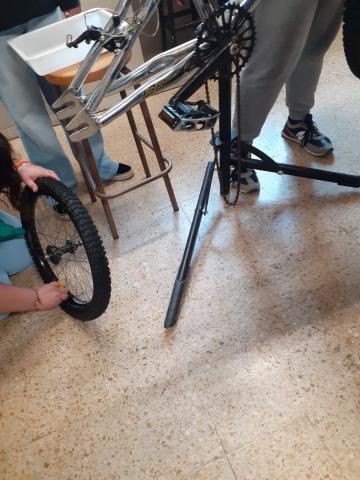 Aquest matí ens han ensenyat com reparar una bicicleta. Com podem arreglar una punxada en una roda i altres manteniments en una bicicleta. Una xerrada teòrica i desprès ho posem en pràctica manipulant una bicicleta. Fitxers relacionats