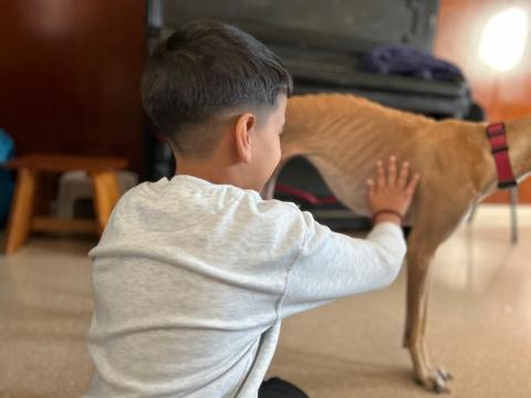 Els dilluns tenim l'activitat amb gossos. Tenim una estona on podem acariciar, pentinar i jugar amb ells. Fitxers relacionats
