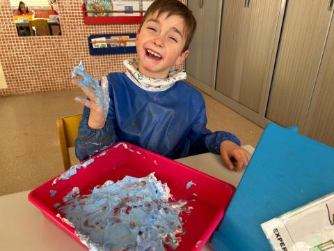 A l'aula Xaloc treballem l'hivern i ens divertim experimentant amb espuma i colorant blau com si fos neu. Fitxers relacionats