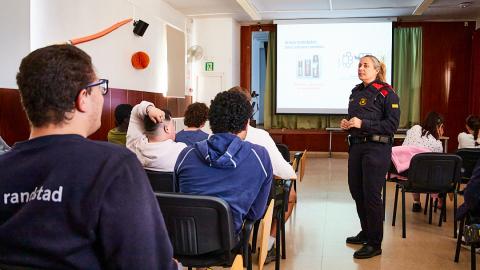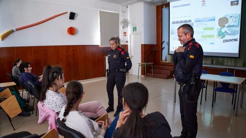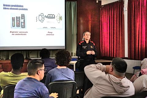 Albert i Cristina son els mossos d’esquadra que han vingut a l’escola per parlar-nos de seguretat en l’ús de les xarxes, com protegir-nos de possibles agressions, ciberbulling… Ja han vingut altres vegades a l’escola a parlar-nos d’aquetes temes. Avui els alumnes que han assitit son els dels programes d’iniciació professional, e dels programes de transcició a la vida laboral i a la vida adulta.