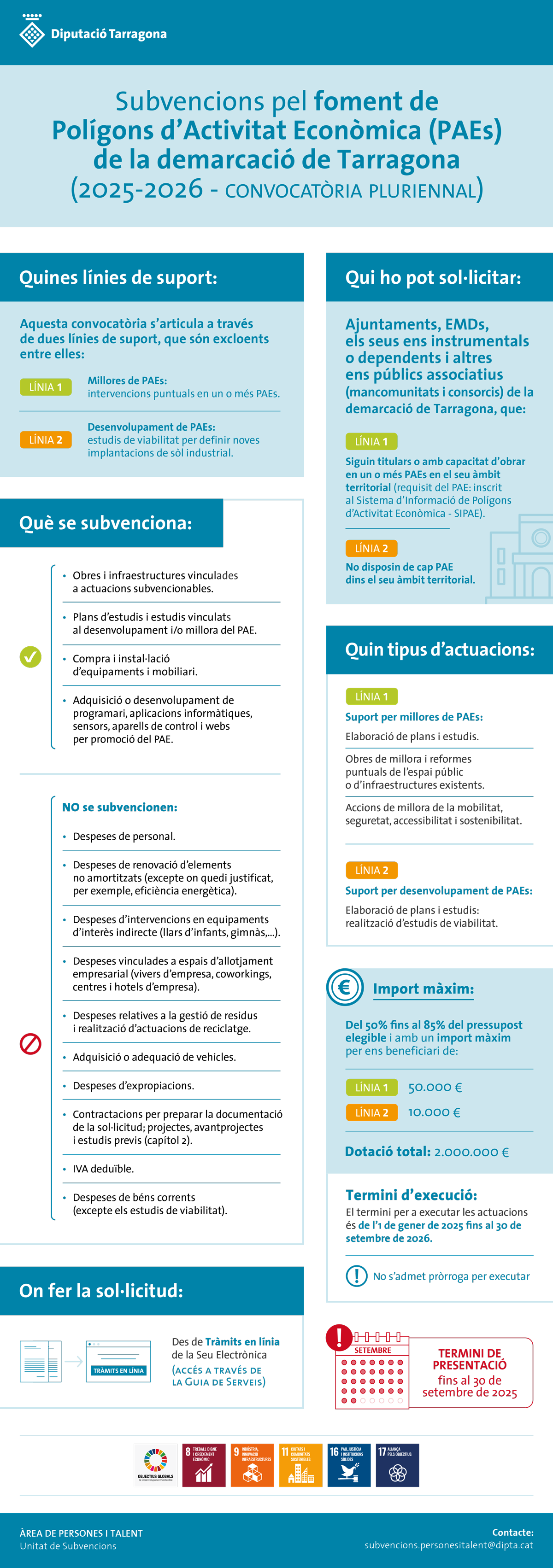 Tipus d'actuació Subvencions, beques i premis T'ajudem Sol·licita-ho Descripció Convocatòries anteriors Sense descripció. Resum infogràfic de la convocatòria 2025 Sense documents relacionats. × En l'actualitat, no existeix cap tràmit de sol·licitud disponible per als procediments administratius associats a aquest servei. Tan bon punt es torni a obrir, trobaràs en aquesta pàgina els enllaços als tràmits associats. T'ajudem, contacta amb nosaltres
