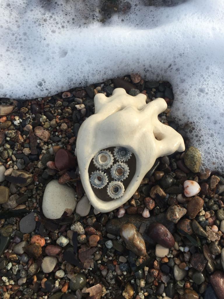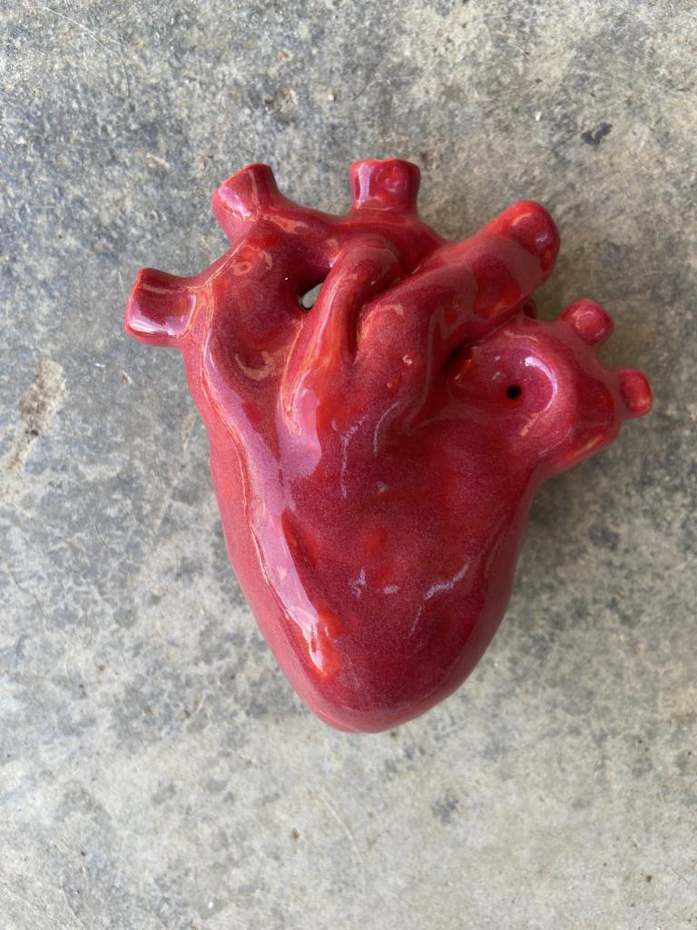 La idea del cor com a motor de la vida es va materialitzar al meu món oníric una nit quan vaig somiar amb un cor anatòmic connectat a la corretja de distribució d’un motor. En despertar-me, el vaig dibuixar per esbossar la idea i crear una escultura de ceràmica basada en ella.
